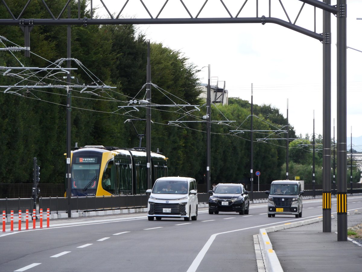 ひとまずは終点まで一往復してみたが、新設軌道の恩恵もあって電車の乗り心地は極めてシルキー。欧州風の新型電車が今様の街道や工業団地の路上を闊歩するかと思えば、ときには田園地帯をすり抜ける情景も新鮮だ。開業ブームが落ち着いたところで、またじっくり沿線を歩いてみたいものである。