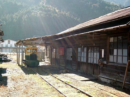 とはいっても、それは本来この土地とは何らゆかりのない機関車だったりする。もとは東京営林局水窪営林署管内で使用され、のちに天竜林業高校にて静態保存されていた酒井C16形3.5t機。詳しい経緯はさておき、とにかくはるばる四国の地までやってきて、フルレストアを受けたのち保存されることになった。当初は馬路集落入口に残る林鉄廃線跡のトンネルに保存、という奇抜なスタイルがとられたが、いつの間にか馬路営林署のヤード跡に移動されて今日に到っているようだ。