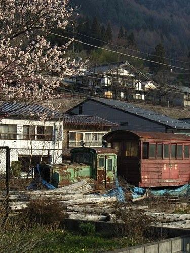 ▲KMCで、こんどの5月連休に王滝村で行われる森林鉄道フェスティバルに出展・協力することになり、その準備の関係もあっで仲間とともに木曽へ足を運んだ。木曽詣のときは中央道を塩尻ICで降りてR19を南下するのが常だが、その行きがけにいつも立ち寄るのが奈良井の線路脇にある“きそしん”の保存車―酒井の5tと助六型のB型客車だ。4月中旬とはいえ、周囲の山々はまだまだ枯色で、画面左側で咲き誇っているのはじつは梅の花。木曽谷の本格的な春はこれからであることを実感する。