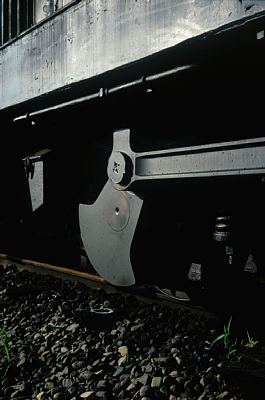 このときは、今まで庫の中でしか対面できなかった同機を初めて陽光の下で拝んだというばかりでなく、当時友人から借りっぱなしだったローライ35Sで初めてポジでの撮影に挑んだという意味でも思い出深い。それまではもっぱらISO400のネガフィルムを用い、なるべく絞り込むことで目測式のピント合わせに対処していたが、実効感度40のPKRともなると露出が稼げない分ピントもシビアになる。それゆえ、上のカマの全体像のように無限遠に近いケースはさておき、右のカウンターウェイトのアップなぞは歩測で距離を測りながらのおっかなびっくりの撮影だった。しかし、現像が上がったときには、そのカラー再現の素晴らしさに撮影の苦労も吹き飛び、その後しばらくはポジ撮りにもしょっちゅうローライを引っ張り出したことが思い出される。
