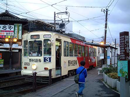 この電停、ごらんのようにホームの脇には古い民家があったり、八百屋の軒先が覆い被さったりしていて
