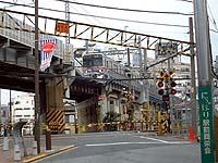 この金杉踏切、ちょうど真上を京成電車がオーバークロスすることもあり、