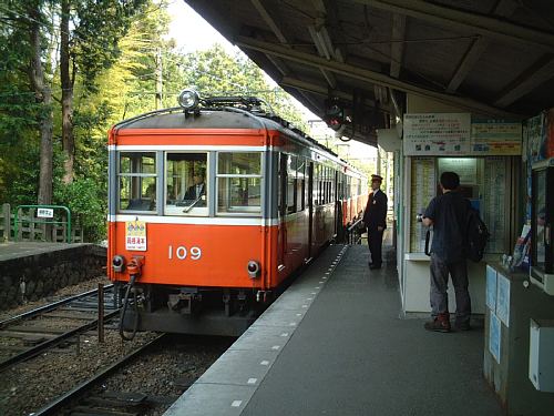 ▲ひそかに?数を減らしつつある箱根登山の旧型車。きょう昼間運用に就いていたのは