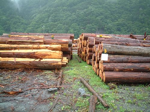 ▲雨の日の上松土場