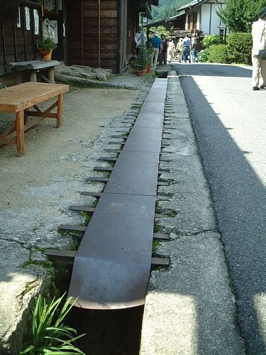 ▲左:妻籠は町並みだけでなく発電所も渋い。関電妻籠発電所。 ▲右:妻籠宿にてレール利用のドブ板を発見。かつて近隣を走っていた林鉄(蘭線)の忘れ形見か。