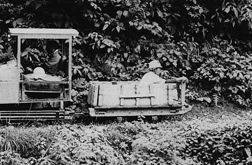 2軸木製台車(II) (?〜2002頃?) 木製台車(I)同様、昔ながらの“トロッコ”。近年でも主に資材の多いときには活躍する姿が見られた。