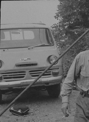 2軸木製台車(I) (?〜1970年代後半?) 1976年に訪問したA氏撮影の写真に写っていたトロッコ。