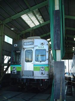 かつての別所線名物であった、“丸窓電車”モハ5250形。廃車後別所温泉の側線に保存されるも