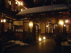 今回泊まった宿・『柏屋別荘』。やはり木造4階建!というのが泣かせる。もっとも、内部は新築に近いくらいの徹底的なレストアが施されていて、使い込まれた味にはやや乏しい。その辺、根津の“はん亭”とちょっと相通ずるものを感じた。