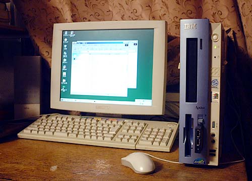 CPU=PentiumII 233MHz/ メモリ=96MB/ HDD=4GB/ OS=Windows95 OSR2 (モニタ:純正17inCRT→IBM 2236-3DN 15inCRT→シャープLL-T153A 15inTFT) 2000.5導入/2001年頃休車 '00年5月友人の知人より払い下げ(ロハ)。ただし落雷被害に遭って通信ポートが死んでおり、ネット使用が不可能という致命傷をもつ。