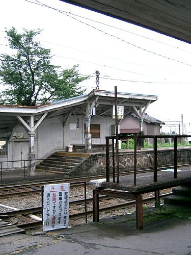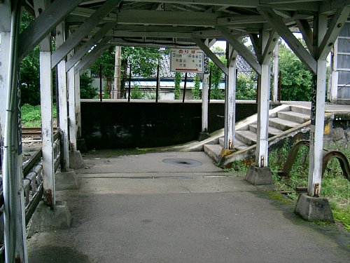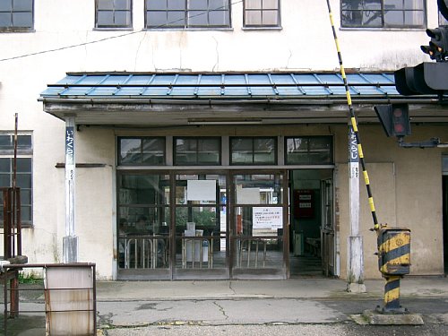 構内踏切側から改札口を見る。 その右手には駅務室の入口。