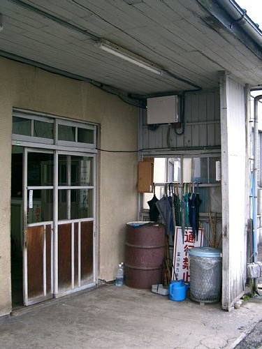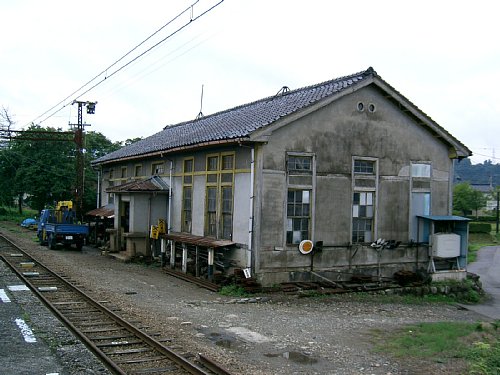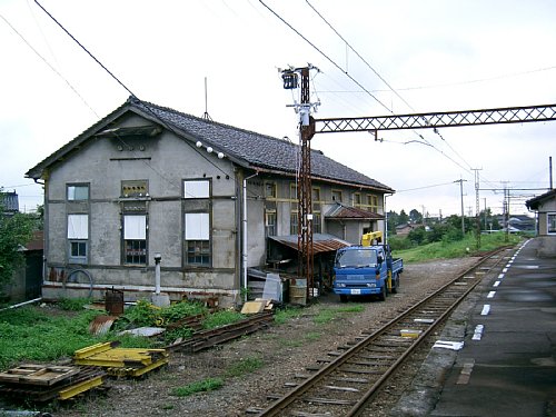 上滝線ホーム脇の、もと変電所とおぼしき建物。現在は保線区の詰所兼倉庫となっているようだ。