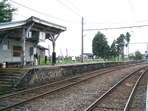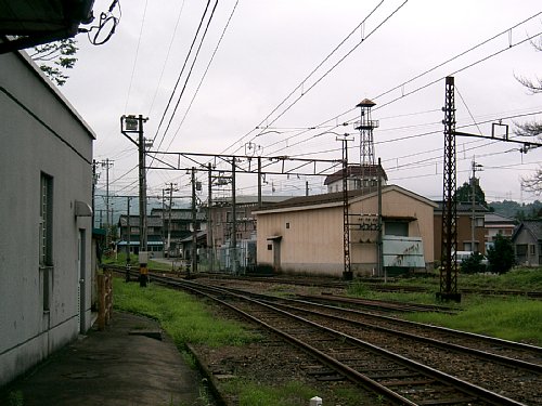 改札前から立山方向を見る。中央の建物は現行の変電所か。