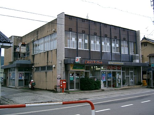 駅前にある農協の支店。時代がかった“くみあいマーケット”のロゴが泣かせる。