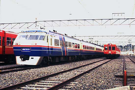 ▲宗吾車庫にて待機するAE100系。学校の鉄研で申し込んだ見学時に撮影。 1986.3 SPF 55mm RDP