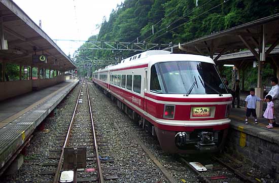 ▲極楽橋で折り返しを待つ30000系ズームカー『こうや』号 2001.7.1 DC3800