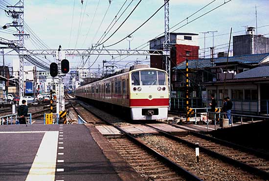 ▲3扉の一般車に格下げされた、往年のロマンスカー2000系。 大牟田本線 花畑 1989.3.12 F-1N 50mm PKR