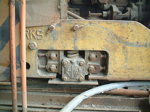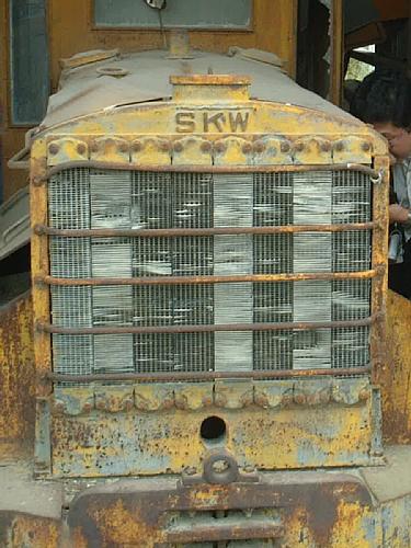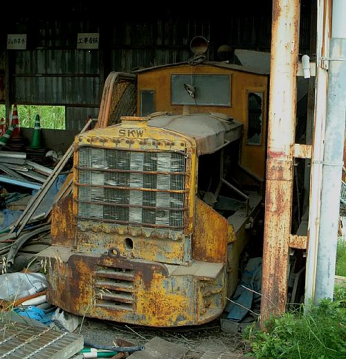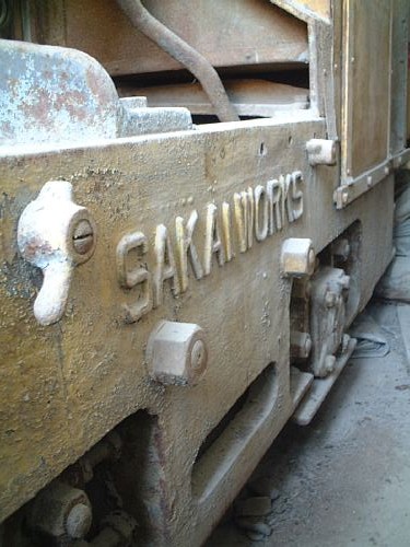 これからご紹介するのは、最近さる知人から写真を見せていただいて、初めてその存在を知ったナローの内燃機関車である。写真を見るかぎりでは、4〜5t級の鋳物台枠機で、台枠には“SAKAI..WORKS”、そして軸受とラジエーター上舟には“SKW”の銘が陽刻されているのだが、そのボディはイエローに彩られ、しかも現車は関東地方のとある建設会社で今もなお保管されているのだという。すなわち、正真正銘の“土工”に従事したと思われる機体なのだ。