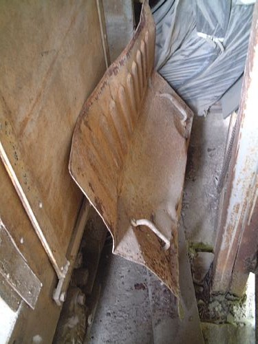 ▲排気管は失われ台座のみ残る。 ■