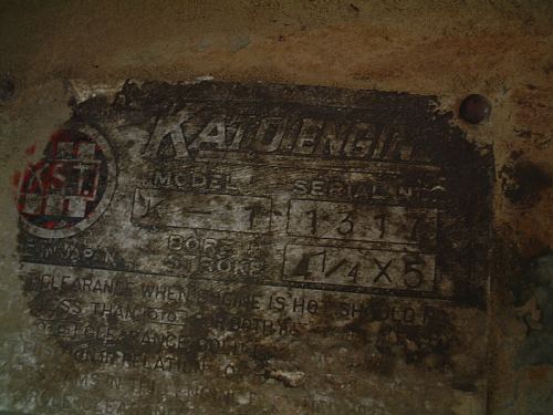 形式K-1、製造番号1317、ボア×ストローク=4-1/4"×5"(108mm×127mm)であることが判る。